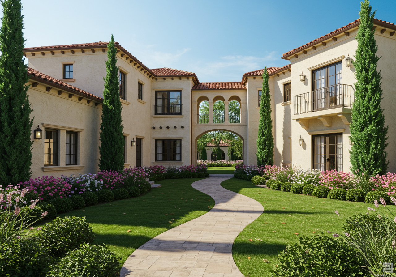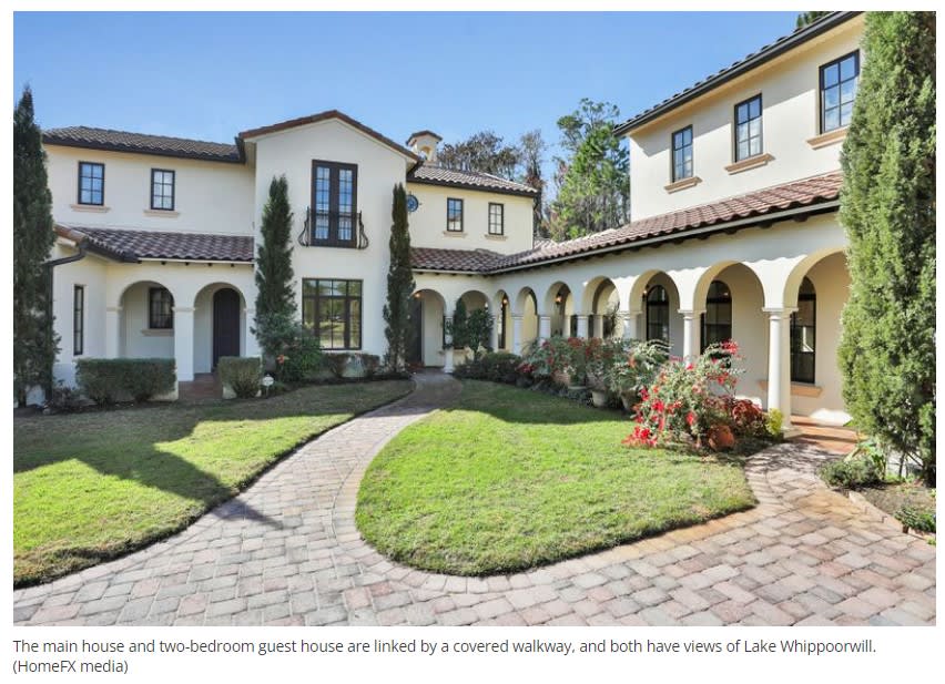 The guest house has two bedrooms and is large at 2,000 square feet. A covered walkway and courtyard connect everything.